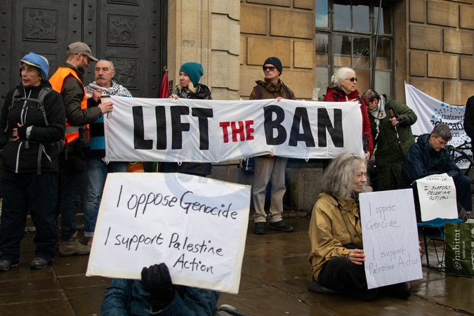 Cambridge, UK, 29th November 2025 - Defend Our Juries protestors arrested in Cambridge as they show support for the proscriped organisation, Palestine Action, as a part of the groups "Lift The Ban" campaign, a campaign calling for the de-proscription of Palestine Action,., Credit:Will Colebourne / Avalon