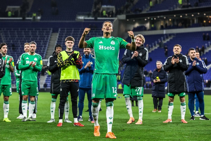 Malick Thiaw of Newcastle United celebrates the win during the Premier League match Everton vs Newcastle United at Hill Dickinson Stadium, Liverpool, United Kingdom, 29th November 2025, Credit:Ae Cosgrove/News Images / Avalon