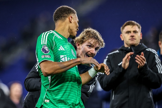 Nick Woltemade of Newcastle United and Malick Thiaw of Newcastle United celebrate the win during the Premier League match Everton vs Newcastle United at Hill Dickinson Stadium, Liverpool, United Kingdom, 29th November 2025, Credit:Ae Cosgrove/News Images / Avalon