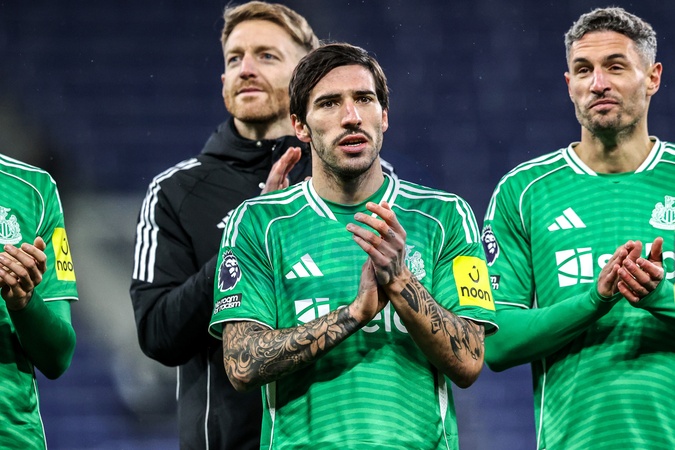 Sandro Tonali of Newcastle United applauds the fans after the game during the Premier League match Everton vs Newcastle United at Hill Dickinson Stadium, Liverpool, United Kingdom, 29th November 2025, Credit:Ae Cosgrove/News Images / Avalon