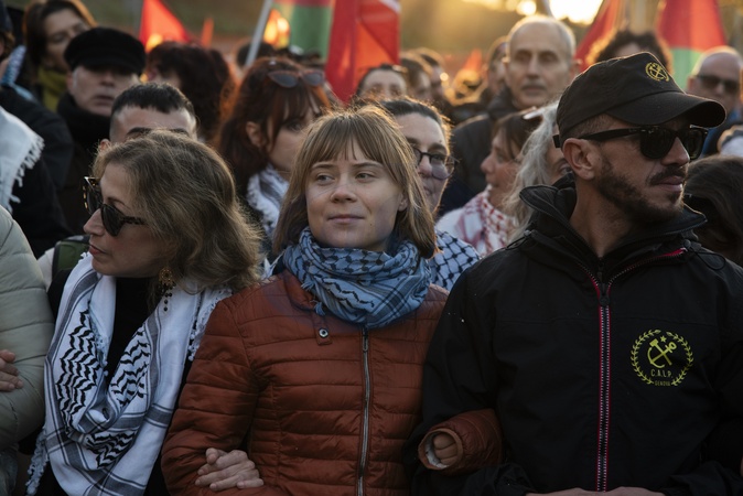 Rome, Italy. 29 november 2025. Pro Palestine demonstration against the war. Greta Thunberg Swedish activist. EDITORIAL USE ONLY - NOT FOR COMMERCIAL USE. It may only be used in accordance with the context in which it was taken, and without any intent to defame or cause harm to the individuals depicted. By Using it, you agree to these terms of use., Credit:Diego Nangano Cappello / Avalon
