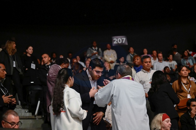Pope Leo XIV celebrated his homily at the Volkswagen Arena in Sariyer, Istanbul, with thousands of faithful from across Turkey. Pictured: The moment of communion. Instanbul, Turkiye 29 November 2025, Credit:VALERIA FERRARO / Avalon
