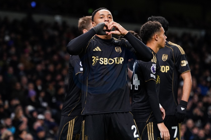 Kenny Tete of Fulham celebrates goal to make it 0-1 during the Premier League match Tottenham Hotspur vs Fulham at Tottenham Hotspur Stadium, London, United Kingdom, 29th November 2025, Credit:Harvey Murphy/News Images / Avalon
