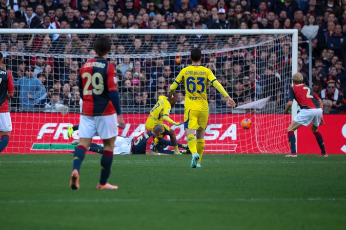 Ferraris Stadium. Serie A, Day 13. Genoa vs. Hellas Verona. Pictured: Belghali's goal. Genova, Italy 29 November 2025, Credit:Gabriele Siri / Avalon