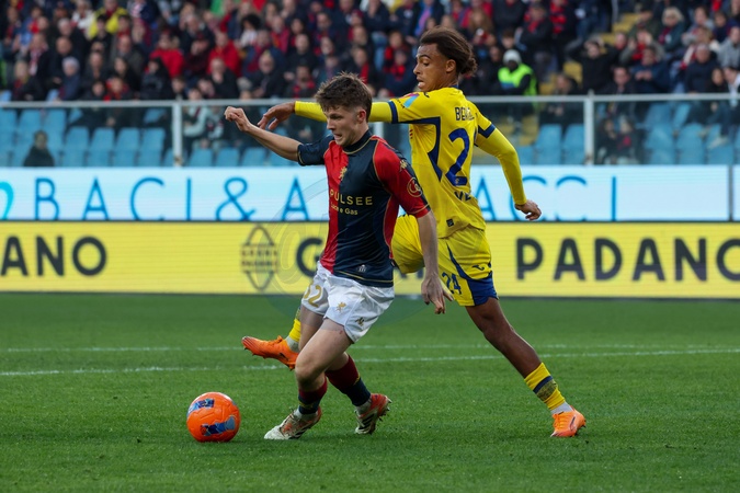Ferraris Stadium. Serie A Football Championship, Day 13. Genoa vs. Hellas Verona. Pictured are Frendrup and Bernede. Genova, Italy 29 November 2025, Credit:Gabriele Siri / Avalon