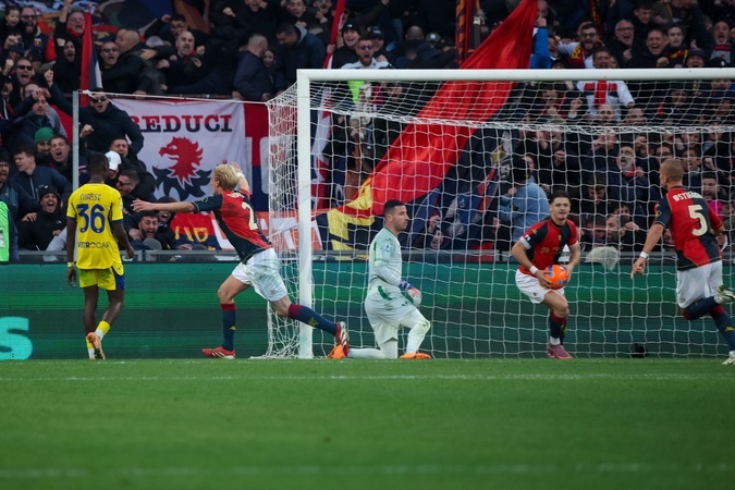 Ferraris Stadium. Serie A, Day 13. Genoa vs. Hellas Verona. Thorsby's goal is pictured. Genova, Italy 29 November 2025, Credit:Gabriele Siri / Avalon