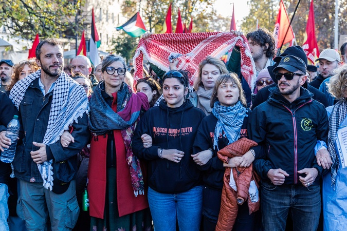 Demonstration on the occasion of the International Day of Solidarity with the Palestinian People. Pictured are Greta Thunberg, Francesca Albanese and Thiago Ávila. Rome, Italy 29 November 2025, Credit:Francesco Fotia / Avalon
