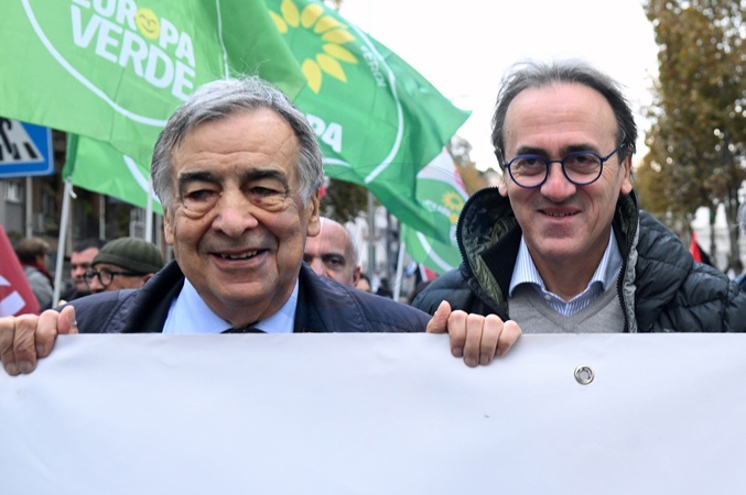 Demonstration against the bridge in photo Angelo Bonelli Leoluca Orlando . Messina, Italy 29 November 2025, Credit:Aleandro Biagianti / Avalon