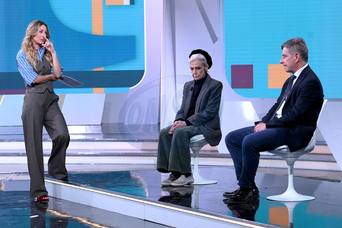 TV show "TV Talk," Rai 3, photo: Mia Ceran, Barbara Alberti, and Stefano Zurlo . Milan, Italy 15 September 2025, Credit:AGF / Avalon