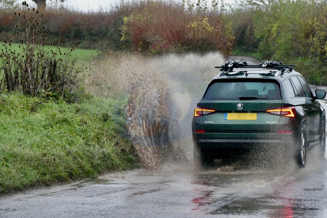 A car drives through the surface water during the heavy rain., Credit:Geoffrey Swaine / Avalon