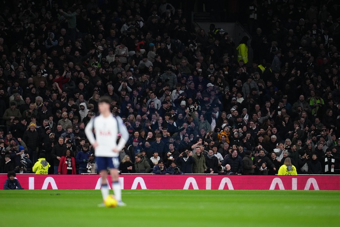 Fulham fans celebrate Fulham lead during the Premier League match Tottenham Hotspur vs Fulham at Tottenham Hotspur Stadium, London, United Kingdom, 29th November 2025, Credit:Harvey Murphy/News Images / Avalon