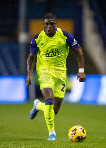 Thierry Small of Preston North End breaks down the wing during the Sky Bet Championship match Sheffield Wednesday vs Preston North End at Hillsborough, Sheffield, United Kingdom, 29th November 2025, Credit:Richard Bierton/News Images / Avalon