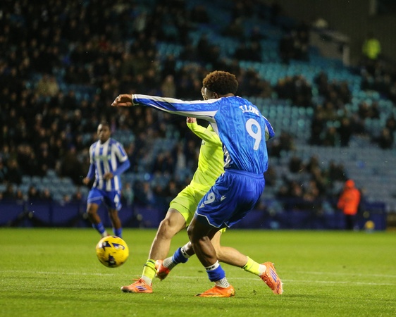 Jamal Lowe of Sheffield Wednesday shoots on goal during the Sky Bet Championship match Sheffield Wednesday vs Preston North End at Hillsborough, Sheffield, United Kingdom, 29th November 2025, Credit:Richard Bierton/News Images / Avalon
