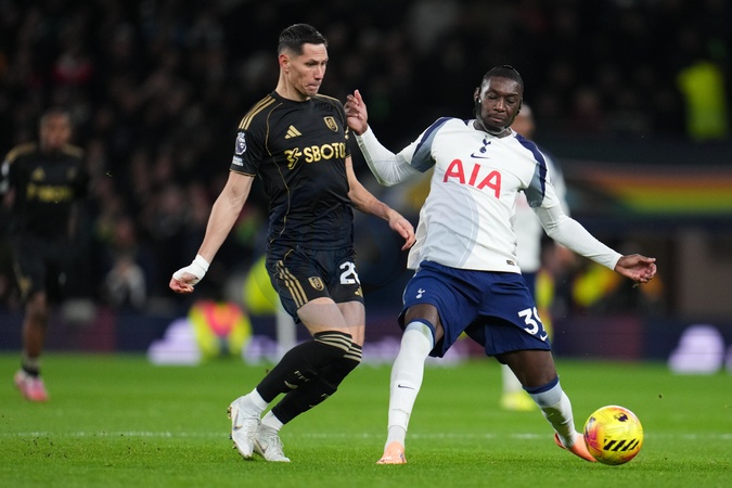 Randal Kolo Muani of Tottenham Hotspur and Sasa Lukic of Fulham during the Premier League match Tottenham Hotspur vs Fulham at Tottenham Hotspur Stadium, London, United Kingdom, 29th November 2025, Credit:Harvey Murphy/News Images / Avalon