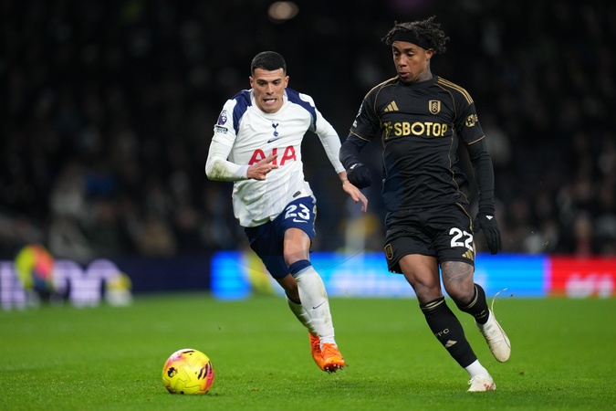 Pedro Porro of Tottenham Hotspur chases down Kevin of Fulham during the Premier League match Tottenham Hotspur vs Fulham at Tottenham Hotspur Stadium, London, United Kingdom, 29th November 2025, Credit:Harvey Murphy/News Images / Avalon