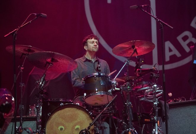 Yard Act performing live at Alexandra Palace, London, 29 November 2025Jay Russell ,drummerYard Act are a British rock band. Their debut album The Overload was released in ‘22 and debuted at number 2 on the UK Albums Chart.Critics have categorised the band's music as post-punk and indie rock.Their lyrics are often political, discussing opposition to topics including capitalism, gentrification and social class, told using "dark humor and cynical storytelling", Credit:Dafydd Owen / Avalon