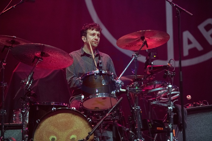 Yard Act performing live at Alexandra Palace, London, 29 November 2025Jay Russell ,drummerYard Act are a British rock band. Their debut album The Overload was released in ‘22 and debuted at number 2 on the UK Albums Chart.Critics have categorised the band's music as post-punk and indie rock.Their lyrics are often political, discussing opposition to topics including capitalism, gentrification and social class, told using "dark humor and cynical storytelling", Credit:Dafydd Owen / Avalon