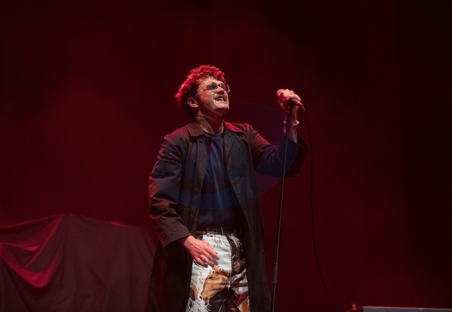 Yard Act performing live at Alexandra Palace, London, 29 November 2025James Smith ,singer, lyricsYard Act are a British rock band. Their debut album The Overload was released in ‘22 and debuted at number 2 on the UK Albums Chart.Critics have categorised the band's music as post-punk and indie rock.Their lyrics are often political, discussing opposition to topics including capitalism, gentrification and social class, told using "dark humor and cynical storytelling", Credit:Dafydd Owen / Avalon