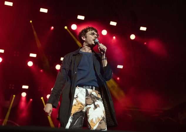 Yard Act performing live at Alexandra Palace, London, 29 November 2025James Smith ,singer, lyricsYard Act are a British rock band. Their debut album The Overload was released in ‘22 and debuted at number 2 on the UK Albums Chart.Critics have categorised the band's music as post-punk and indie rock.Their lyrics are often political, discussing opposition to topics including capitalism, gentrification and social class, told using "dark humor and cynical storytelling", Credit:Dafydd Owen / Avalon