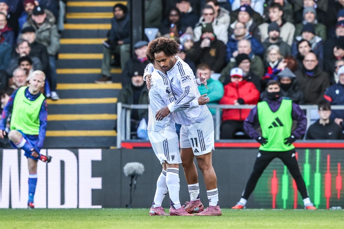 Joshua Zirkzee of Manchester United celebrates his goal to make it 1-1 during the Premier League match Crystal Palace vs Manchester United at Selhurst Park, London, United Kingdom, 30th November 2025, Credit:Ae Cosgrove/News Images / Avalon