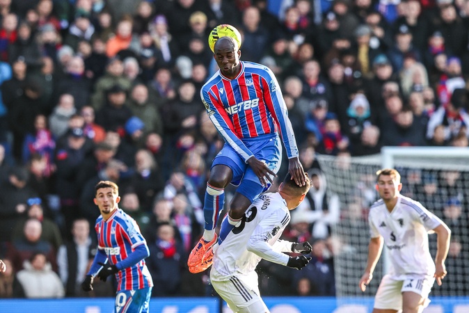Jean-Philippe Mateta of Crystal Palace jumps up to win the high ball during the Premier League match Crystal Palace vs Manchester United at Selhurst Park, London, United Kingdom, 30th November 2025, Credit:Ae Cosgrove/News Images / Avalon
