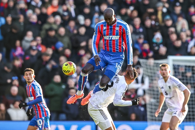 Jean-Philippe Mateta of Crystal Palace jumps up to win the high ball during the Premier League match Crystal Palace vs Manchester United at Selhurst Park, London, United Kingdom, 30th November 2025, Credit:Ae Cosgrove/News Images / Avalon