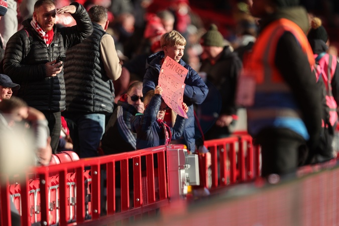 Young Nottingham Forest fan with sign for Dan Ndoye of Nottingham Forest shirt during the Premier League match Nottingham Forest vs Brighton and Hove Albion at City Ground, Nottingham, United Kingdom, 30th November 2025, Credit:Richard Bierton/News Images / Avalon