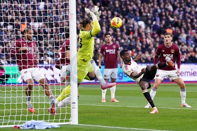 Alphonse Areola of West Ham United denies Alexander Isak of Liverpool during the Premier League match West Ham United vs Liverpool at London Stadium, London, United Kingdom, 30th November 2025, Credit:Harvey Murphy/News Images / Avalon