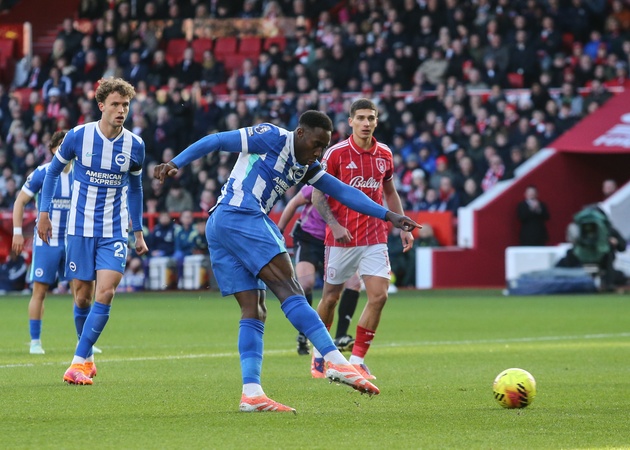 Danny Welbeck of Brighton & Hove Albion shoots on goal during the Premier League match Nottingham Forest vs Brighton and Hove Albion at City Ground, Nottingham, United Kingdom, 30th November 2025, Credit:Richard Bierton/News Images / Avalon