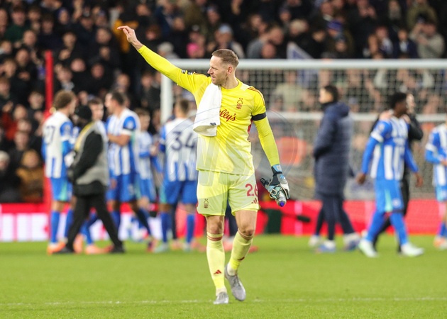 Nottingham Forest goalkeeper Matz Sels applauds the fans during the Premier League match Nottingham Forest vs Brighton and Hove Albion at City Ground, Nottingham, United Kingdom, 30th November 2025, Credit:Richard Bierton/News Images / Avalon