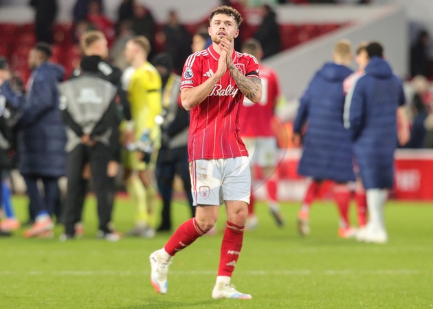 Neco Williams of Nottingham Forest applauds the fans during the Premier League match Nottingham Forest vs Brighton and Hove Albion at City Ground, Nottingham, United Kingdom, 30th November 2025, Credit:Richard Bierton/News Images / Avalon