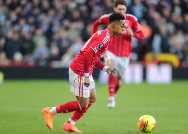 Omari Hutchinson of Nottingham Forest on ball during the Premier League match Nottingham Forest vs Brighton and Hove Albion at City Ground, Nottingham, United Kingdom, 30th November 2025, Credit:Richard Bierton/News Images / Avalon