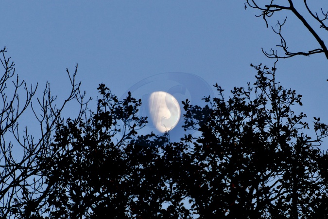 The waxing gibbous moon rises over the copse at dusk., Credit:Geoffrey Swaine / Avalon