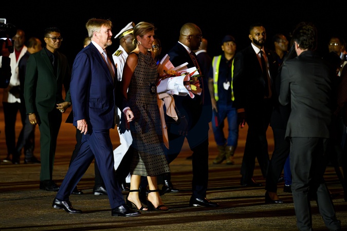Paramaribo, The Netherlands, 2025-11-30 19:30:34PARAMARIBO, November 30, 2025, Johan Adolf Pengel International Airport. King Willem-Alexander and Queen Máxima are arriving at Johan Adolf Pengel International Airport on a state visit to the Republic of Suriname at the invitation of President Jennifer Geerlings-Simons. PHOTO: NLBeeld/Patrick van Emst, Credit:Avalon