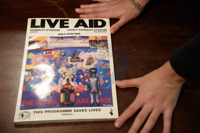 A staff member views 'An Autographed Live Aid Programme' various artists autographs (est. £3k - £4k) which is on auction at Bonhams Sound & Cinema: With Property from The Marianne Faithfull Estate Sale ending from 3rd December 2025 at Bonhams in London, England, UK on Monday 1 December, 2025., Credit:Justin Ng / Avalon