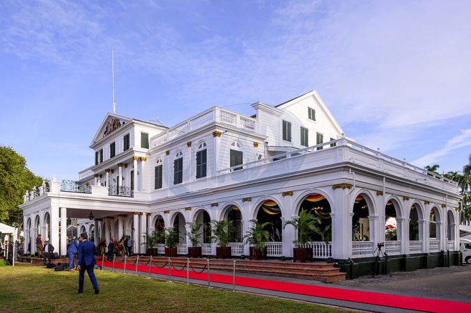 Paramaribo, The Netherlands, 2025-12-01 08:03:50PARAMARIBO, December 1, 2025, Presidential Palace. King Willem-Alexander and Queen Máxima are paying a state visit to the Republic of Suriname at the invitation of President Jennifer Geerlings-Simons. President Simons and her husband will welcome the Royal Couple at the Presidential Palace with an official welcome ceremony, followed by a private chat. PHOTO: NLBeeld/Patrick van Emst, Credit:Avalon