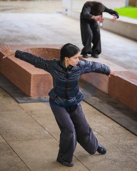 London, UK. 01st Dec, 2025. Dancers create movement around the forms of the work. 'Open Monuments' by Melek Zeynep Bulut, is a new public installation and London Design Festival Landmark Project in the courtyard of the Design Museum in Kensington. LDF will present Open Monuments by Melek Zeynep Bulut at the Design Museum from 1 - 14 Dec 2025., Credit:Imageplotter / Avalon