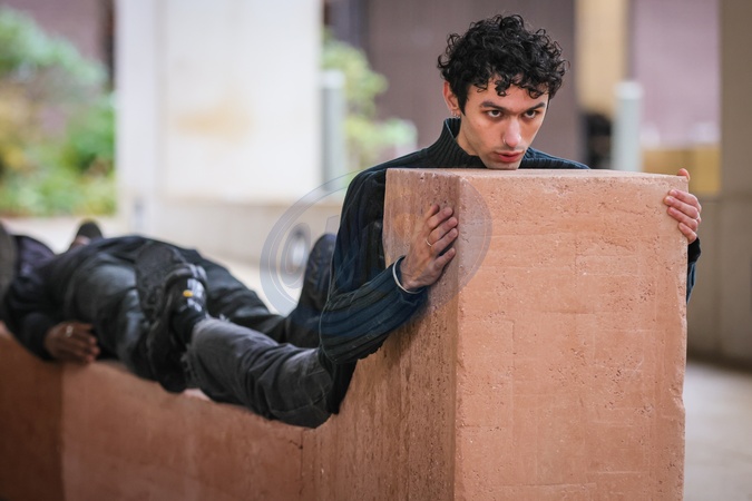 London, UK. 01st Dec, 2025. Dancers create movement around the forms of the work. 'Open Monuments' by Melek Zeynep Bulut, is a new public installation and London Design Festival Landmark Project in the courtyard of the Design Museum in Kensington. LDF will present Open Monuments by Melek Zeynep Bulut at the Design Museum from 1 - 14 Dec 2025., Credit:Imageplotter / Avalon