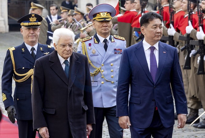 President Sergio Mattarella with Khurelsukh Ukhnaa, President of Mongolia, on an official visit. December 1, 2025, Rome., Credit:Paul Giandotti / Avalon