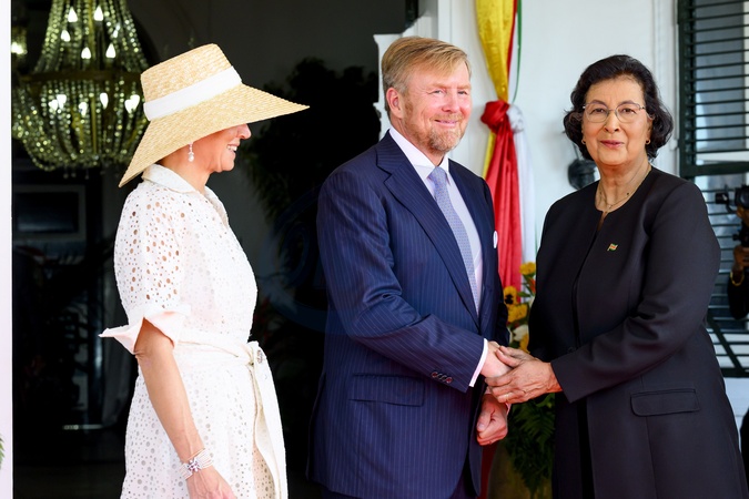 Paramaribo, The Netherlands, 2025-12-01 09:16:43PARAMARIBO, December 1, 2025, Presidential Palace. King Willem-Alexander and Queen Máxima are paying a state visit to the Republic of Suriname at the invitation of President Jennifer Geerlings-Simons. President Simons and her husband will welcome the Royal Couple at the Presidential Palace with an official welcome ceremony, followed by a private chat. PHOTO: NLBeeld/Patrick van Emst, Credit:Avalon
