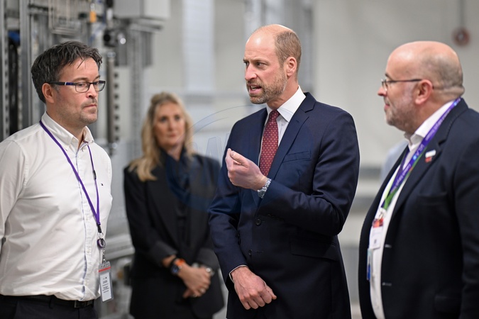 Prince William, Prince of Wales gets a tour by John Peploe (L), Facilities Director of KLA, and Andrew Evans of SPTS during a visit at the semiconductor manufacturer SPTS, a division of KLA, ahead of the Wales Investment Summit on December 01, 2025 in Newport, Wales. Organized by the Welsh Government at the ICC Wales, the Summit will bring together over 300 delegates from almost 30 countries across sectors including clean energy, technology, life sciences, financial services, manufacturing and the creative industries. Wales is currently home to around 1,480 overseas-owned companies employing more than 174,000 people., Credit:Avalon.red / Avalon