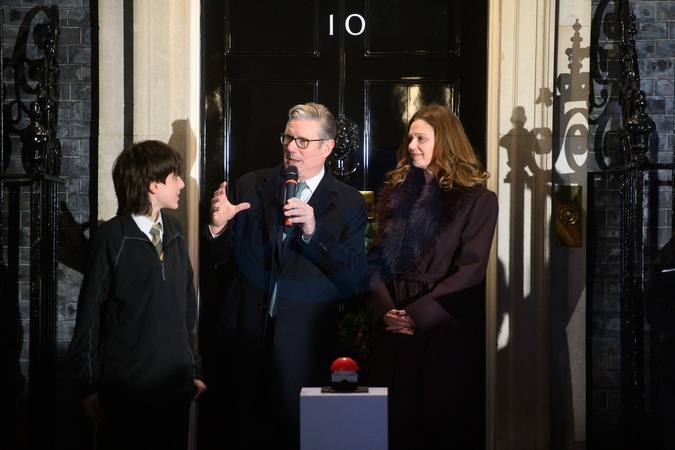 British Prime Minister Sir Keir Starmer and wife Victoria Starmer host the Christmas light switch on (switched on by 14 Year old Litter Campaigner Samuel Salamone) in Downing Street, London, England, UK on Monday 1 December, 2025., Credit:Justin Ng / Avalon