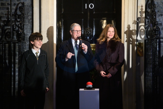 British Prime Minister Sir Keir Starmer and wife Victoria Starmer host the Christmas light switch on (switched on by 14 Year old Litter Campaigner Samuel Salamone) in Downing Street, London, England, UK on Monday 1 December, 2025., Credit:Justin Ng / Avalon