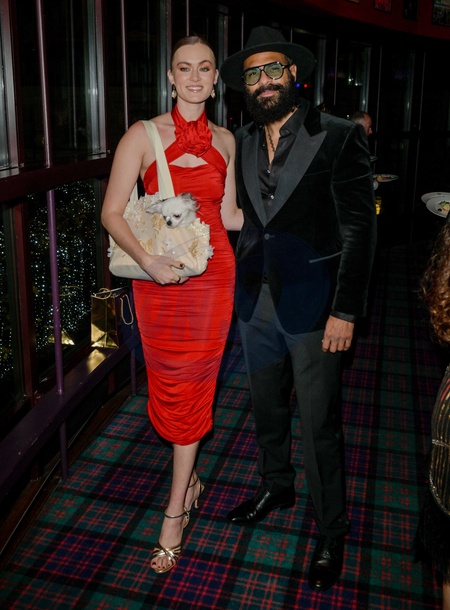 David Haye and Sian Osborne with their pet Chihuahua seen at the Boisdale Cigar Awards 2025, Boisdale of Canary Wharf, London 01-12-2025, Credit:Jules Annan / Avalon