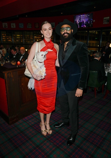 David Haye and Sian Osborne with their pet Chihuahua seen at the Boisdale Cigar Awards 2025, Boisdale of Canary Wharf, London 01-12-2025, Credit:Jules Annan / Avalon