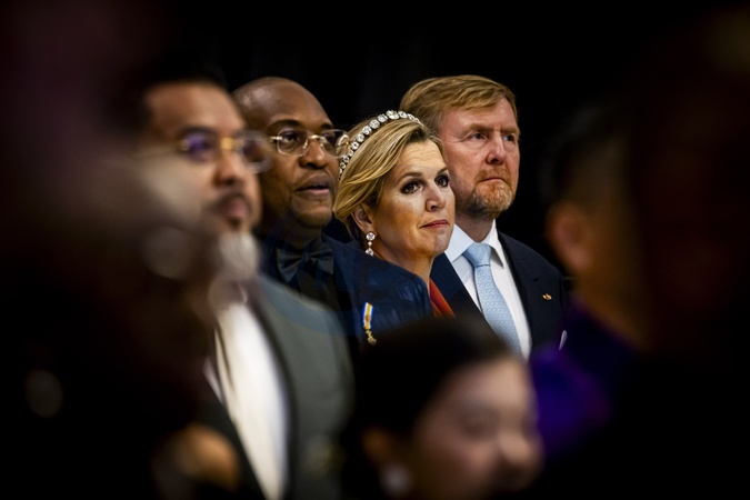 Paramaribo, The Netherlands, 2025-12-01 20:02:55PARAMARIBO, December 1, 2025, Prince Ballroom. King Willem-Alexander and Queen Máxima are paying a state visit to the Republic of Suriname at the invitation of President Jennifer Geerlings-Simons. In honor of King Willem-Alexander and Queen Máxima's state visit, President Simons is hosting a state banquet. PHOTO: NLBeeld/POOL/Patrick van Katwijk. Pictured:, Credit:Avalon