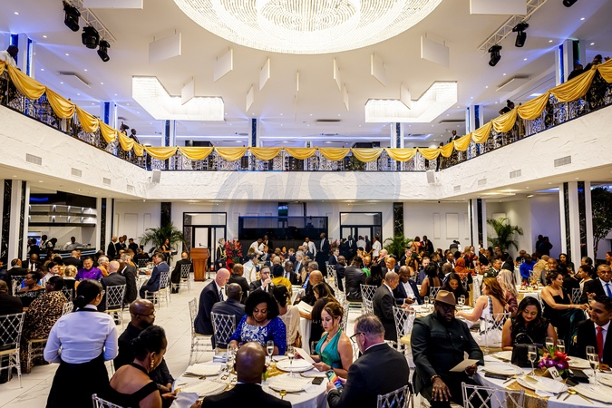 Paramaribo, The Netherlands, 2025-12-01 20:15:34PARAMARIBO, December 1, 2025, Prince Ballroom. King Willem-Alexander and Queen Máxima are paying a state visit to the Republic of Suriname at the invitation of President Jennifer Geerlings-Simons. In honor of King Willem-Alexander and Queen Máxima's state visit, President Simons is hosting a state banquet. PHOTO: NLBeeld/POOL/Patrick van Katwijk. Pictured:, Credit:Avalon