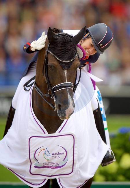 Equestrian - FEI European Championships 2015 - Aachen, Germany - 15/8/15Great Britain's Charlotte Dujardin pats ValegroLivepic, Credit:FEI/Arnd Bronkhorst/Pool Pic / Avalon