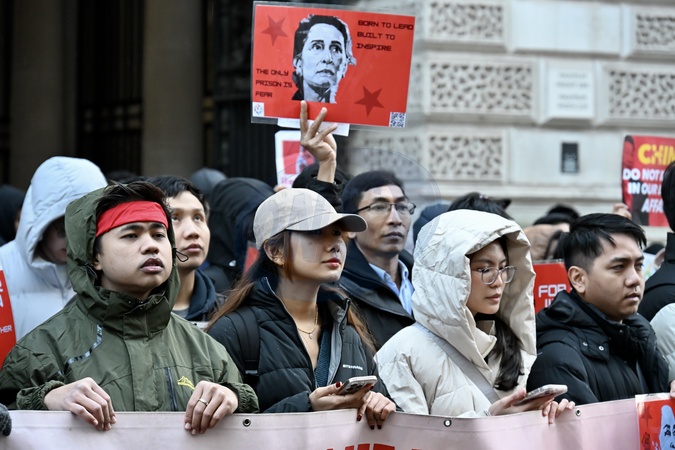 London, UK. A protest was held outside the Foreign Office & EU Delegation Office to oppose the Myanmar regimes 2025-26 elections on November 25th., Credit:Michael Melia / Avalon
