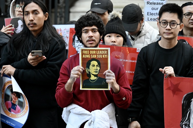 London, UK. A protest was held outside the Foreign Office & EU Delegation Office to oppose the Myanmar regimes 2025-26 elections on November 25th., Credit:Michael Melia / Avalon